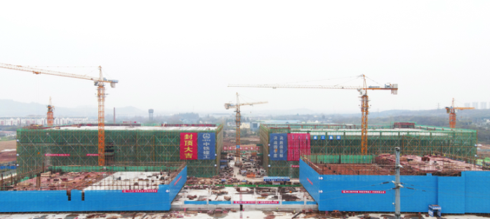 時不我待,只爭朝夕。11月以來,項目組成員腳步越來越快,瞄準目標、聚力攻關(guān),始終堅持高起點籌劃、高標準要求,緊緊把握“黃金”時間,協(xié)同合作,一層一層地按節(jié)點高質(zhì)量推進工程建設(shè)。11月30日,模塊廠房完成主體結(jié)構(gòu)封頂,該廠房地下有一層、地上有四層,總建筑面積約42340平方,建筑高度23.5米。此外,項目另兩棟關(guān)鍵廠房也進展順利,中試廠房已進入三層施工,芯片廠房預(yù)計12月15日完成主體結(jié)構(gòu)封頂,進度均比年度計劃提前約20天。