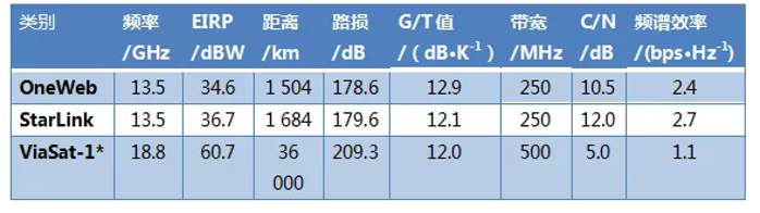 低軌衛(wèi)星至地面用戶的傳輸距離遠(yuǎn)小于GEO-HTS,在路徑損耗方面具備約30 dB的優(yōu)勢(shì)(如表6)。但GEO-HTS采用的大衛(wèi)星平臺(tái)支持更大的發(fā)射功率,可以部分彌補(bǔ)其路徑損耗。例如,ViaSat-1衛(wèi)星的等效全向輻射功率(EIRP)比StarLink衛(wèi)星高24 dB,在采用增益與系統(tǒng)噪聲溫度比(G/T)值同為12 dB/K左右的用戶終端時(shí),ViaSat-1用戶接收機(jī)的載波噪聲比(C/N)比StarLink低7 dB,因此,其頻譜效率更低。換言之,低軌衛(wèi)星在地表的信號(hào)強(qiáng)度比GEO-HTS約高7 dB,若要實(shí)現(xiàn)相同的頻譜效率,其用戶終端天線孔徑約為GEO-HTS的一半。表 6 低軌星座和GEO-HTS用戶下行鏈路預(yù)算注:未查到ViaSat-3衛(wèi)星的鏈路預(yù)算資料,用ViaSat-1衛(wèi)星的進(jìn)行估計(jì)。